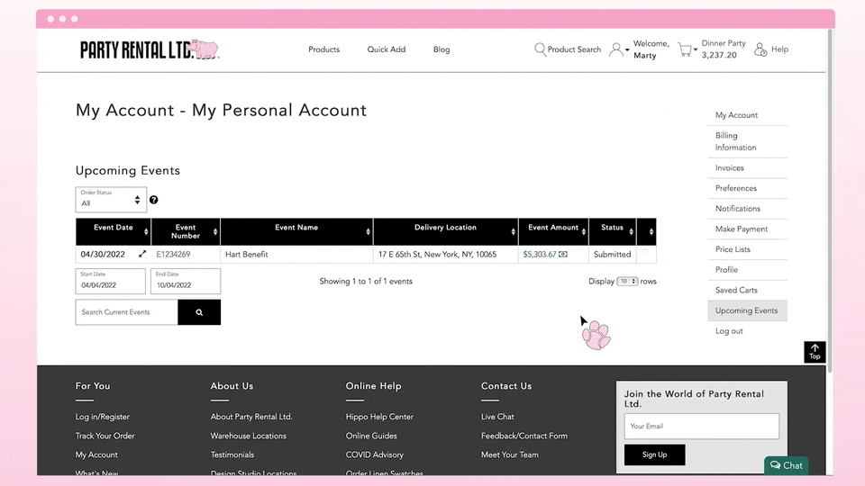 Party Rental offers an online catalog of event/catering products,